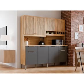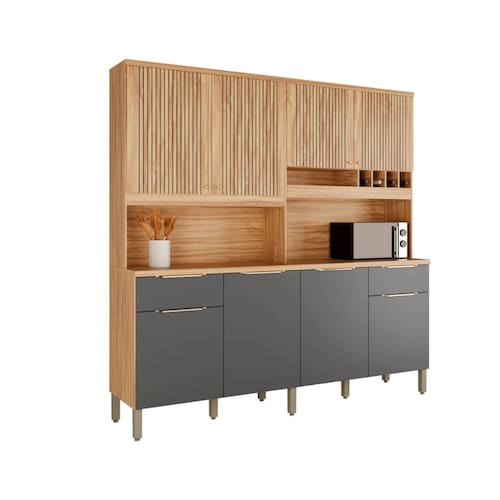 Possui gaveta com corrediça telescopica, prateliras, espoço para microondas, adega, puxador em ABS e pés em ABS com regulagem.