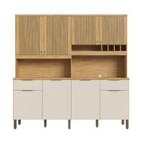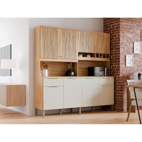 Kit Cozinha Ronipa Concord 08 portas MDF 02 gavetas e Adega - Amêndoa | Off White