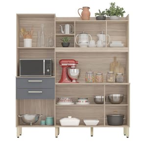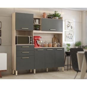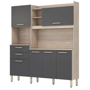 Com 6 portas, sendo uma superior com pistão a gás e duas amplas gavetas com corrediça metálica, 3 prateleiras internas e ainda possui pés reguláveis. Com este armário a sua cozinha vai ficar mais linda e aconchegante.