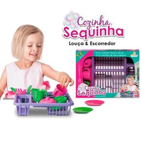 Indicação: Maiores de 3 Anos. Tamanho Aproximado do Escorredor: 4x23.5x22cm. Kit Cozinha Infantil Sequinha Com Escorredor e Acessórios. Cor: Colorido. Composição: Plástico.