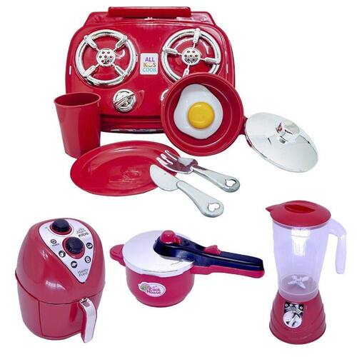 Kit cozinha vermelho brinquedo infantil air fryer fogão 9pç
