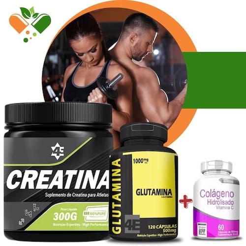 Kit creatina 300gr + 1 pote glutamina - 1 pote colágeno com vitamina c