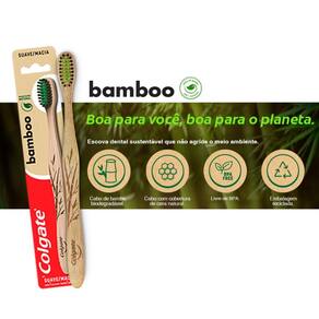 A nova Escova Dental Colgate Bambo possuí o Cabo feito com bambu natural e sustentável certificado pelo FSC. A embalagem é reciclável e com Cerdas de ponta fina infundidas com carvão para um melhor embranquecimento dos dentes. Não possuí Bisfenol A na sua fabricação.