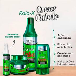 Kit Cresce cabelo Completo Forever Liss foi desenvolvido especialmente para você, que sonha com fios longos, lindos e cheios de vida. É a combinação perfeita de tudo que você precisa para cuidar da saúde dos cabelos de forma profissional. A limpeza profunda do shampoo e a hidratação máxima da máscara fortalecem os fios, tornando-os mais resistentes e evitando a queda e deixando os Fios fortalecidos. Já o