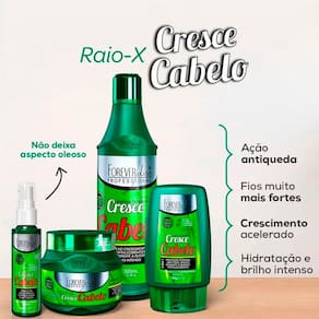 O Kit Cresce Cabelo Crescimento Acelerado Profissional Forever Liss é um tratamento natural que aliado a vitaminas e outros ativos como a Biotina e o D’Pantenol, resulta em um tratamento que une limpeza profunda, hidratação intensa, ação antiqueda e brilho intenso. O Shampoo Cresce Cabelo Forever Liss limpa profundamente enquanto oferece uma reparação absoluta para cabelos danificados. Já a Máscara Cresce Cabelo realiza uma hidratação profunda nos cabelos opacos e quebradiços, restaurando fio a fio em poucos minutos.