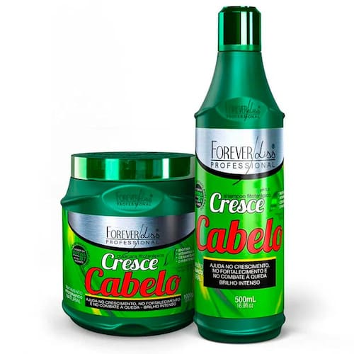 O Kit Cresce Cabelo Crescimento Acelerado Profissional Forever Liss é um tratamento natural que aliado a vitaminas e outros ativos como a Biotina e o D’Pantenol, resulta em um tratamento que une limpeza profunda, hidratação intensa, ação antiqueda e brilho intenso. O Shampoo Cresce Cabelo Forever Liss limpa profundamente enquanto oferece uma reparação absoluta para cabelos danificados. Já a Máscara Cresce Cabelo realiza uma hidratação profunda nos cabelos opacos e quebradiços, restaurando fio a fio em poucos minutos.