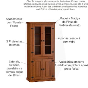 Dimensões da Estante Cristaleira 4 Portas 100% Madeira: