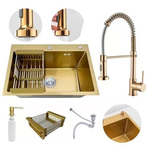 Kit cuba inox gourmet dourada quadrada cozinha torneira flexivel Cuba gourmet 60x45cm dourada brinovar Especificações técnicas Marca: brinovar Material: aço inoxidável 201 Cor: dourado Acabamento: escovado acetinado Modelo: 60x45cm Formato: retangular Medidas total da cuba: 60 c x 45 l x 21,5 a cm Medida interna da cuba: 55 c x 35 l x 21 a cm Espessura: 3mm Capacidade total: 40 litros Indicação: cozinha, espaços gourmet, ilhas e churrasqueiras Aplicação: embutir ou sobrepor Diâmetro furo para torneira: 35mm posição central Diâmetro furo para dispenser: 28mm lado direito Furo para válvula: 4 1 2 Posição da válvula: centralizada Aceita triturador: sim Acompanha acessórios: sim Válvula escape ladrão: sim Capacidade do dispenser detergente: 300ml Escorredor extensível: medida aberto 45x21,5 e medida fechado 28x21,5cm Sifão: sim Anti-ruído: sim, pintura externa e aplicação da manta no fundo e laterais : 90 dias Torneira gourmet extensível dourada brinovar Especificações técnicas: Marca: brinovar Cor: dourado Acabamento: cromado brilhante Material: aço inox 304 Aplicação: bancada - pia - cuba Instalação: cozinha - espaços gourmet - ilhas - churrasqueiras Sistema: monocomando Bica: giratória, rotação 360 graus Jato de água: arejador com opcional acionamento de ducha gourmet através do botão Comprimento: 24 cm Largura: 4,7 cm Altura: 49 cm Tamanho máximo da mangueira extensora: 50cm Cartucho: cartucho cerâmico de alta durabilidade 500.000 ciclos Temperatura mínima da água: 5celcius Temperatura máxima da água: 75celcius Utilização somente com água fria: sim, necessário a utilização de adaptador 't' não incluso Aquecedor compatível com a torneira: elétrico, solar e gás não incluso Pressão mínima da água: 3mca metros de coluna dágua Pressão máxima da água: 40mca metros de coluna dágua Pressão ideal da água: acima de 5mca metros de coluna dágua Perfuração da bancada: 3,5 cm Rosca: 3 cm : 90 dias Cuidados: Não use palha de aço, produtos químicos, não usar ácido muriático, água sanitária ou qualquer outro solvente para a limpeza. Limpe periodicamente o seu produto apenas com um pano macio, água e sabão neutro. Para manter o brilho do seu produto recomendamos o uso da pasta para polir e remover manchas em superfícies de aço inoxidável. Itens inclusos: Torneira monocomando extensível Mangueira flexível de aço trançado 50cm para ligação de água quente e fria Sistema de fixação Anéis de vedação Cuba brinovar projetada para aplicação sobreposta ou embutida Dosador de sabão de 300ml com sistema recarrega fácil. Não é necessário retirar o reservatório para reabastecê-lo. Válvula 4 1 2 totalmente compatíveis com o uso de trituradores elétricos Válvula e tubulação do ladrão Cesto escorredor extensível Sifão Marca: Não Informado