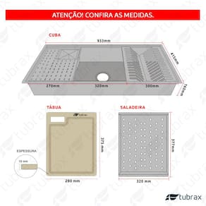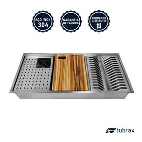 Cuba de cozinha de embutir e sobrepor Tubrax® - Modelo CAC0023-N + Tábua MAC0008