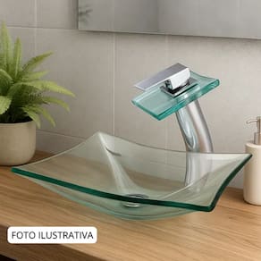 Kit Cuba de Vidro para Banheiro com Torneira Monocomando e Válvula