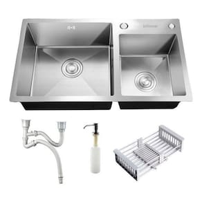 Kit cuba pia gourmet cozinha inox + torneira gourmet 2 saídas Especificações técnicas Marca: brinovar Material: aço inoxidável 201 Cor: prata Acabamento: escovado acetinado Modelo: cuba dupla Formato: retangular Medidas internas cuba grande: 38 c x 39 l x 20 a cm Capacidade: 30 litros Medidas internas cuba pequena: 33 c x 31 l x 20 a cm Capacidade: 20 litros Medidas total da cuba: 78 c x 43 l x 20 a cm Capacidade total: 50 litros Espessura: 3mm Indicação: cozinha, espaços gourmet, ilhas e churrasqueiras Aplicação: embutir ou sobrepor Diâmetro furo para torneira: 35mm lado esquerdo Diâmetro furo para dispenser: 28mm lado direito Furo para válvula: 4 1 2 Posição da válvula: centralizada Aceita triturador: sim Acompanha acessórios: sim Válvula escape - ladrão: sim Capacidade do dispenser detergente: 300ml Escorredor extensível: medida aberto 45x21,5cm e medida fechado 28x21,5cm Sifão: sim Anti-ruído: sim, pintura externa e aplicação da manta no fundo e laterais : 90 dias Torneira gourmet 2 saídas prata brinovar Especificações técnicas: Marca: brinovar Cor: prata Acabamento: escovado acetinado Material: aço inox 304 Aplicação: bancada - pia Instalação: cozinha - espaços gourmet - ilhas - churrasqueiras Sistema: monocomando Bica: móvel e giratória com rotação 360 graus Quantidade de saídas de água: 2 Jato de água: bica giratória aerado e bica móvel ducha gourmet com acionamento através do botão Arejador: sim Comprimento: 21 cm Largura: 4,5 cm Altura: 47 cm Cartucho: cartucho cerâmico de alta durabilidade 500.000 ciclos Temperatura mínima da água: 5 celcius Temperatura máxima da água: 75 celcius Utilização somente com água fria: sim, necessário a utilização de adaptador 't' não incluso Aquecedor compatível com a torneira: elétrico, solar e gás não incluso Pressão mínima da água: 3mca metros de coluna dágua Pressão máxima da água: 40mca metros de coluna dágua Pressão ideal da água: acima de 5mca metros de coluna dágua Perfuração da bancada: 3,5 cm Rosca: 3 cm : 90 dias Cuidados: Não use palha de aço, produtos químicos, não usar ácido muriático, água sanitária ou qualquer outro solvente para a limpeza. Limpe periodicamente o seu produto apenas com um pano macio, água e sabão neutro. Para manter o brilho do seu produto recomendamos o uso da pasta para polir e remover manchas em superfícies de aço inoxidável. Itens inclusos: Torneira monocomando 2 saídas Mangueira flexível de aço trançado 50cm para ligação de água quente e fria Sistema de fixação Anéis de vedação Cuba dupla brinovar projetada para aplicação sobreposta ou embutida. Dosador de sabão de 300ml com sistema recarrega fácil. Não é necessário retirar o reservatório para reabastecê-lo. Cesto escorredor extensível Válvula 4 1 2 totalmente compatíveis com o uso de trituradores elétricos . Válvula e tubulação do ladrão Sifão Marca: Não Informado