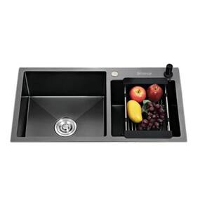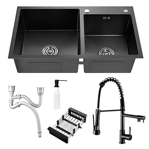 Kit cuba pia gourmet preta cozinha inox + torneira gourmet 2 saídas Cuba dupla gourmet preta brinovar Especificações técnicas Marca: brinovar Material: aço inoxidável 201 Cor: preto Acabamento: escovado acetinado Modelo: cuba dupla Formato: retangular Medidas internas cuba grande: 38 c x 39 l x 20 a cm Capacidade: 30 litros Medidas internas cuba pequena: 33 c x 31 l x 20 a cm Capacidade: 20 litros Medidas total da cuba: 78 c x 43 l x 20 a cm Capacidade total: 50 litros Espessura: 3mm Indicação: cozinha, espaços gourmet, ilhas e churrasqueiras Aplicação: embutir ou sobrepor Diâmetro furo para torneira: 35mm lado esquerdo Diâmetro furo para dispenser: 28mm lado direito Furo para válvula: 4 1 2 '' Posição da válvula: centralizada Aceita triturador: sim Acompanha acessórios: sim Válvula escape - ladrão: sim Capacidade do dispenser detergente: 300ml Escorredor extensível: medida aberto 45x21,5cm e medida fechado 28x21,5cm Sifão: sim Anti-ruído: sim, pintura externa e aplicação da manta no fundo e laterais : 90 dias Torneira gourmet 2 saídas preta brinovar Especificações técnicas: Marca: brinovar Cor: preto Acabamento: fosco Material: aço inox 304 Modelo: 2 saídas de bancada Indicação: cozinha - espaços gourmet - ilhas - churrasqueiras Instalação: bancada - pia Sistema: monocomando Bica: móvel e giratória com rotação 360 graus Quantidade de saídas de água: 2, torneira ducha e torneira para filtro filtro não incluso Jato de água: bica giratória aerado e bica móvel ducha gourmet com acionamento através do botão Arejador: sim Altura: 51 cm Largura: 4,5 cm Comprimento total: 26,5 cm Temperatura mínima da água: 5 celcius Temperatura máxima da água: 75 celcius Utilização somente com água fria: sim, necessário a utilização de adaptador 't' não incluso Aquecedor compatível com a torneira: elétrico, solar e gás não incluso Pressão mínima da água: 3mca metros de coluna dágua Pressão máxima da água: 40mca metros de coluna dágua Pressão ideal da água: acima de 5mca metros de coluna dágua Cartucho: cartucho cerâmico de alta durabilidade 500.000 ciclos Perfuração da bancada: 3,5 cm Rosca: 3 cm : 90 dias Atenção: o produto não acompanha filtro, apenas a torneira para o filtro Cuidados: Não use palha de aço, produtos químicos, não usar ácido muriático, água sanitária ou qualquer outro solvente para a limpeza. Limpe periodicamente o seu produto apenas com um pano macio, água e sabão neutro. Para manter o brilho do seu produto recomendamos o uso da pasta para polir e remover manchas em superfícies de aço inoxidável. Itens inclusos: Torneira monocomando 2 saídas Mangueira flexível de aço trançado 50cm para ligação de água quente e fria Sistema de fixação Anéis de vedação Cuba dupla brinovar projetada para aplicação sobreposta ou embutida. Dosador de sabão de 300ml com sistema recarrega fácil. Não é necessário retirar o reservatório para reabastecê-lo. Cesto escorredor extensível Válvula 4 1 2 totalmente compatíveis com o uso de trituradores elétricos . Válvula e tubulação do ladrão Sifão Marca: Não Informado