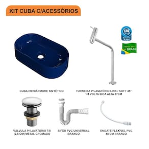 Sobre o ProdutoKit Cuba OV42 C/Torneira Link 1062 Metal + Válvula Click 1''G + Sifão Pvc + Flexível AmareloDescrição do ProdutoO Kit KTCAOV420W.AM.1062.AP03 é uma combinação perfeita da Cuba de Apoio CAOV420W.AM com acessórios complementares, prontos para instalação no seu lavabo ou móvel de banheiro. Ele conta com 1 Cuba de Apoio Oval Laila 42,9X25,2cm Amarelo + 1 Torneira P/Lavatório Pratika 45 1/4 Volta Bica Alta 36cm Metal Cromado + 1 Válvula P/Lavatório Click Up 1" (2,6cm) V03 Metal Cromado + 1 Sifão Pvc Universal Branco + 1 Engate Flexível Pvc Branco 40cm + 0 , todos compatíveis e prontos para instalação.Itens Inclusos:1 Cuba de Apoio + 1 Torneira de mesa alta + 1 Válvula de Escoamento Clik Up + 1 Sifão PVC Universal Branco + 1 Engate Flexível 40cm Informações Logísticas:Vol.01 Comp.: 46,5cm Prof.: 30cm Alt.: 16cm Peso Bruto: 4,816Kg Observações:Não acompanha acessórios decorativos. Imagens meramente ilustrativas.Informações Técnicas / CaracterísticasCuba de Apoio Oval Laila 42,9X25,2cm Amarelo Cor: Amarelo Marca: Compace Modelo: CAOV420 Linha: Conect Formato: Oval Tipo de Cuba: Apoio Material: Mármore Sintético Acabamento: Hard Lacca PU Escala de Brilho: Brilho Possui Ladrão: Não Possui Furação para Torneira: Não Diâmetro do Furo para Válvula: (40mm) - DN 40 Comprimento: 42,9cm Largura: 25,2cm Altura: 10,5cm Peso Líq.: 3,6Kg Recomendações de Uso, Manutenção e Limpeza: Utilize flanela seca ou pano macio, levemente umedecido com água. Evite contato com produtos químicos e abrasivos (solventes, thinner, acetona etc) e não utilize nenhum tipo de esponja de aço. Para maior brilho, recomendamos a utilização de cera automotiva n 2. Necessita de Montagem: Sim / Acompanha Manual de Montagem Complexidade da Montagem: Média: pode ser montado por mais de uma pessoa e/ou necessite de maior conhecimento para montagem. Garantia: 6 mesesTorneira P/Lavatório Pratika 45 1/4 Volta Bica Alta 36cm Metal Cromado Cor: Cromado Marca: Compace Modelo: 1062 Linha: Pratika Tipo de Torneira: Convencional Local: Lavatório Tipo de Instalação: De Mesa Acabamento: Camada de Cromo Salt Spray. Possui alta resistência contra corrosão, maresia, oxidação e descascamento. Material: Liga de Cobre (Bronze e Latão), Inox, Zamac, Elastômeros e Plásticos de Engenharia Possui Arejador Sim Tipo de Bica: Fixa Pressão Máxima: 40 m.c.a. Pressão Mínima: 2 m.c.a. Temperatura da Água Indicada: Mín.: 5 Celsius / Máx.: 70 Celsius Bitola do Cano: 1/2" Altura Total: 36cm Altura da base até a saída da água: 28cm Profundidade da saída da água até o final do cano: 14cm Peso Líq.: 0,3Kg Recomendações de Uso, Manutenção e Limpeza: Limpar apenas com pano macio e sabão neutro. Não usar produtos abrasivos como sapólio, palha de aço e produtos químicos. Garantia: 5 anosVálvula P/Lavatório Click Up 1" (2,6cm) V03 Metal Cromado Cor: Cromado Marca: Compace Modelo: CO1613V03 Linha: Complementos Tipo: Click Local: Lavatório Acabamento: Cromado Material: Zamak, Elastômeros e Plásticos de Engenharia. Bitola do Cano: 1" Possui Ladrão: Não Altura: 8cm Diâmetro: 5,7cm Altura Total: 9cm Peso Líq.: 0,15Kg Recomendações de Uso, Manutenção e Limpeza: Limpar apenas com pano macio e sabão neutro. Não usar produtos abrasivos como sapólio, palha de aço e produtos químicos. Necessita de Montagem: Sim Complexidade da Montagem: Média: pode ser montado por mais de uma pessoa e/ou necessite de maior conhecimento para montagem. Garantia: 5 anosSifão Pvc Universal Branco Cor: Branco Marca: Compace Modelo: SPVC Linha: Complementos Tipo: Flexível Local: Multiuso Acabamento: PVC Material: PVC Bitola do Cano: Universal Temperatura da Água Indicada: Mín.: 0 Celsius / Máx.: 90 Celsius Comprimento: 29cm Diâmetro: 5cm Comprimento Total: 71cm Peso Líq.: 0,1Kg Recomendações de Uso, Manutenção e Limpeza: Limpar apenas com pano macio e sabão neutro. Não usar produtos abrasivos como sapólio, palha de aço e produtos químicos. Necessita de Montagem: Sim Complexidade da Montagem: Média: pode ser montado por mais de uma pessoa e/ou necessite de maior conhecimento para montagem. Garantia: 01 anoEngate Flexível Pvc Branco 40cm Cor: Branco Marca: Compace Modelo: FLEX Linha: Complementos Tipo: Flexível Local: Multiuso Acabamento: PVC Material: PVC Bitola do Cano: Universal Pressão Indicada: 40 m.c.a. Temperatura da Água Indicada: Fria Comprimento: 40cm Diâmetro: 2cm Peso Líq.: 0,08Kg Recomendações de Uso, Manutenção e Limpeza: Limpar apenas com pano macio e sabão neutro. Não usar produtos abrasivos como sapólio, palha de aço e produtos químicos. Necessita de Montagem: Sim Complexidade da Montagem: Média: pode ser montado por mais de uma pessoa e/ou necessite de maior conhecimento para montagem. Garantia: 01 ano