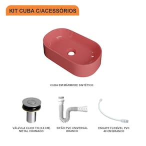Sobre o ProdutoKit Cuba OV42 C/Válvula Click 1''B (2,6cm) + Sifão Pvc + Flexível AmareloDescrição do ProdutoO Kit KTCAOV420W.AM.AP02 é uma combinação perfeita da Cuba de Apoio CAOV420W.AM com acessórios complementares, prontos para instalação no seu lavabo ou móvel de banheiro. Ele conta com 1 Cuba de Apoio Oval Laila 42,9X25,2cm Amarelo + 1 Válvula P/Lavatório Click Up Interno 1" (2,6cm) V02 Metal Cromado + 1 Sifão Pvc Universal Branco + 1 Engate Flexível Pvc Branco 40cm + 0+ 0 , todos compatíveis e prontos para instalação.Itens Inclusos:1 Cuba de Apoio + 1 Válvula de Escoamento Clik Up + 1 Sifão PVC Universal Branco + 1 Engate Flexível 40cm Informações Logísticas:Vol.01 Comp.: 46,5cm Prof.: 30cm Alt.: 16cm Peso Bruto: 4,476Kg Observações:Não acompanha acessórios decorativos. Imagens meramente ilustrativas.Informações Técnicas / CaracterísticasCuba de Apoio Oval Laila 42,9X25,2cm Amarelo Cor: Amarelo Marca: Compace Modelo: CAOV420 Linha: Conect Formato: Oval Tipo de Cuba: Apoio Material: Mármore Sintético Acabamento: Hard Lacca PU Escala de Brilho: Brilho Possui Ladrão: Não Possui Furação para Torneira: Não Diâmetro do Furo para Válvula: (40mm) - DN 40 Comprimento: 42,9cm Largura: 25,2cm Altura: 10,5cm Peso Líq.: 3,6Kg Recomendações de Uso, Manutenção e Limpeza: Utilize flanela seca ou pano macio, levemente umedecido com água. Evite contato com produtos químicos e abrasivos (solventes, thinner, acetona etc) e não utilize nenhum tipo de esponja de aço. Para maior brilho, recomendamos a utilização de cera automotiva n 2. Necessita de Montagem: Sim / Acompanha Manual de Montagem Complexidade da Montagem: Média: pode ser montado por mais de uma pessoa e/ou necessite de maior conhecimento para montagem. Garantia: 6 mesesVálvula P/Lavatório Click Up Interno 1" (2,6cm) V02 Metal Cromado Cor: Cromado Marca: Compace Modelo: CO1612V02 Linha: Complementos Tipo: Click Local: Lavatório Acabamento: Cromado Material: Zamak, Elastômeros e Plásticos de Engenharia. Bitola do Cano: 1" Possui Ladrão: Não Altura: 7cm Diâmetro: 5,5cm Altura Total: 8cm Peso Líq.: 0,11Kg Recomendações de Uso, Manutenção e Limpeza: Limpar apenas com pano macio e sabão neutro. Não usar produtos abrasivos como sapólio, palha de aço e produtos químicos. Necessita de Montagem: Sim Complexidade da Montagem: Média: pode ser montado por mais de uma pessoa e/ou necessite de maior conhecimento para montagem. Garantia: 5 anosSifão Pvc Universal Branco Cor: Branco Marca: Compace Modelo: SPVC Linha: Complementos Tipo: Flexível Local: Multiuso Acabamento: PVC Material: PVC Bitola do Cano: Universal Temperatura da Água Indicada: Mín.: 0 Celsius / Máx.: 90 Celsius Comprimento: 29cm Diâmetro: 5cm Comprimento Total: 71cm Peso Líq.: 0,1Kg Recomendações de Uso, Manutenção e Limpeza: Limpar apenas com pano macio e sabão neutro. Não usar produtos abrasivos como sapólio, palha de aço e produtos químicos. Necessita de Montagem: Sim Complexidade da Montagem: Média: pode ser montado por mais de uma pessoa e/ou necessite de maior conhecimento para montagem. Garantia: 01 anoEngate Flexível Pvc Branco 40cm Cor: Branco Marca: Compace Modelo: FLEX Linha: Complementos Tipo: Flexível Local: Multiuso Acabamento: PVC Material: PVC Bitola do Cano: Universal Pressão Indicada: 40 m.c.a. Temperatura da Água Indicada: Fria Comprimento: 40cm Diâmetro: 2cm Peso Líq.: 0,08Kg Recomendações de Uso, Manutenção e Limpeza: Limpar apenas com pano macio e sabão neutro. Não usar produtos abrasivos como sapólio, palha de aço e produtos químicos. Necessita de Montagem: Sim Complexidade da Montagem: Média: pode ser montado por mais de uma pessoa e/ou necessite de maior conhecimento para montagem. Garantia: 01 ano