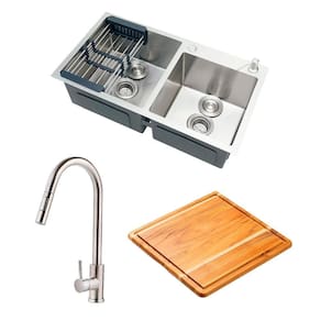 Medidas internas cuba grande: 37 cm X 38 cm X 23 cm Medidas internas cuba pequena: 33,5 cm X 33,5 cm X 23 cm Furo da torneira: 3,5 cm Posição da Válvula: Centralizada Furação da Válvula: 4.1/2' Válvula Escape/Ladrão: Não Aceita Triturador: Sim Anti-Ruído: Sim Sifão: Sim Fixação: Silicone acético (não incluso)