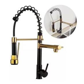 Especificações técnicas: Marca: brinovar Cor: preto e dourado Acabamento: preto fosco e dourado cromado brilhante Material: aço inox 304 Modelo: 2 saídas de bancada Indicação: cozinha - espaços gourmet - ilhas - churrasqueiras Instalação: bancada - pia Sistema: monocomando Bica: móvel e giratória com rotação 360 graus Quantidade de saídas de água: 2, torneira ducha e torneira para filtro filtro não incluso Jato de água: bica giratória aerado e bica móvel ducha gourmet com acionamento através do botão Arejador: sim Altura: 51 cm Largura: 4,5 cm Comprimento total: 26,5 cm Temperatura mínima da água: 5 celcius Temperatura máxima da água: 75 celcius Utilização somente com água fria: sim, necessário a utilização de adaptador 't' não incluso Aquecedor compatível com a torneira: elétrico, solar e gás não incluso Pressão mínima da água: 3mca metros de coluna dágua Pressão máxima da água: 40mca metros de coluna dágua Pressão ideal da água: acima de 5mca metros de coluna dágua Cartucho: cartucho cerâmico de alta durabilidade 500.000 ciclos Perfuração da bancada: 3,5 cm Rosca: 3 cm Garantia: 90 dias