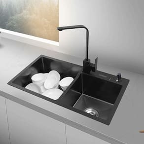 Especificações técnicas Marca: brinovar Material: aço inoxidável 201 Cor: preta Acabamento: escovado acetinado Formato: retangular Medidas internas cuba grande: 38 l x 39 c x 20 a cm Capacidade: 30 litros Medidas internas cuba pequena: 33 l x 31 c x 20 a cm Capacidade: 20 litros Medidas total da cuba: 43 l x 78 c x 20 a cm Capacidade total: 50 litros Espessura: 3mm Diâmetro furo para torneira: 35mm lado esquerdo Diâmetro furo para dispenser: 28mm lado direito Furo para válvula de 4 1 2 '' Posição da válvula: centralizada Modelo: dupla Indicação: cozinha, espaços gourmet, ilhas e churrasqueiras Aplicação: embutir ou sobrepor Anti-ruído: sim, pintura externa e aplicação da manta no fundo e laterais Válvula escape - ladrão: sim Acompanha acessórios: sim Aceita triturador: sim Sifão: sim Garantia: 90 dias