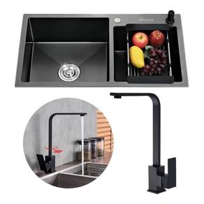 Kit cuba pia gourmet dupla preta cozinha aço inox + torneira perfil em l slim luxo preta