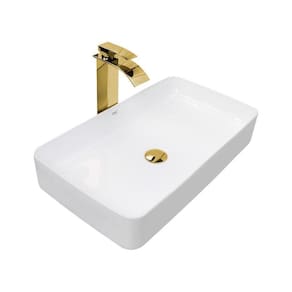 Kit Cuba Pia Louça Cerâmica Banheiro C/Torn E Vál Dourada 56