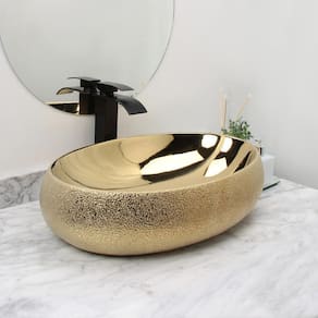 Informações da Cuba Tipo de Cuba : Cuba oval em cerâmica de altíssima qualidade e durabilidade. Acabamento Construção e Acabamento : Esmaltado Tonalidade : Dourado. Cor : Dourado Brilhante Tecnologia : Smart Norte Peso kg : 13 Altura cm : 16 Largura cm : 41 Comprimento cm : 59