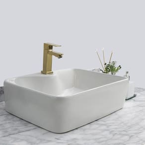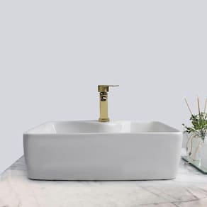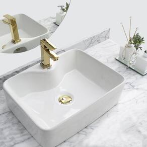 Kit Cuba Pia Louça Cerâmica Banheiro Com Torn E Vál Dourada 5 Decore seu banheiro com este kit de sobrepor contendo cuba, torneira e válvula que não é apenas uma tendência no mundo do desenho, mas também lhe dará espaço suficiente em seus lados para colocar itens de higiene pessoal.