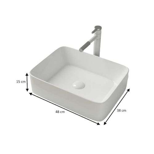 Kit Cuba Pia Louça Cerâmica Banheiro Com Torn E Vál Preta S15 Decore seu banheiro com este kit de sobrepor contendo cuba, torneira e válvula que não é apenas uma tendência no mundo do desenho, mas também lhe dará espaço suficiente em seus lados para colocar itens de higiene pessoal.Sóbria e minimalistaAs linhas retas e simples de seu desenho , dará um toque moderno e minimalista a este importante espaço da sua casa.Durável e fácil de usarFeita em cerâmica legitima, este artefato oferece excelente qualidade e durabilidade, e também é uma oportunidade estética para decorar seu banheiro, ao qual trará personalidade e estilo.Medidas da cuba: A 13 cm L 38 cm C 48 cmMedidas da torneira: A 31 cm L 3,5 cm C 10,5 cmMedidas da Válvula: A 9 cm L 6,5 cm