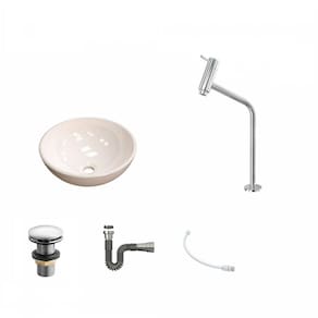 O Kit KTCARD350W.CL.1062.AC03 é uma combinação perfeita da Cuba de Apoio CARD350W.CL com acessórios complementares, prontos para instalação no seu lavabo ou móvel de banheiro. Ele conta com 1 Cuba de Apoio Redonda R35 35cm Colorida e 1 Torneira para Lavatório Pratika 45° 1/4 Volta Bica Alta 36cm Metal Cromado e 1 Válvula para Lavatório Click Up 1 Polegada (2,6cm) V03 Metal Cromado e 1 Sifão Pvc Universal Cromado e 1 Engate Flexível Pvc Branco 40cm, todos compatíveis e prontos para instalação. Acompanha Flexível: Sim Acompanha Manual de Instalação: Sim Acompanha Sifão: Sim Acompanha Torneira: Sim Altura: 13 cm Altura da Torneira: 36 cm Comprimento: 35 cm Comprimento do Flexível: 40 cm Comprimento Máximo do Sifão: 71 cm Comprimento Mínimo do Sifão: 29 cm Cor: Bege Cor do Produto: Bege Diâmetro de Entrada do Sifão: 1.1/4 Polegadas Diâmetro de Saída do Sifão: 1.1/4 Polegadas Diâmetro do Flexível: 1/2 Polegada Diâmetro para válvula: 40 mm Informações Complementares: Itens Inclusos: 1 Cuba de Apoio, 1 Torneira de mesa alta, 1 Válvula de Escoamento Clik Up, 1 Sifão PVC Universal Cromado, 1 Engate Flexível 40cm Largura: 35 cm Linha ou Coleção: Conect Manual de Montagem e Instalação: https://cdn2.madeiramadeira.com.br/atributo/compace/646377-ktcard350wcl1062ac03.rar Material da Torneira: Latão Material do Flexível: PVC Material do Sifão: PVC Material Principal: Mármore Sintético Origem do Produto: Nacional Peso: 4 kg Possui furação para torneira: Não Possui ladrão: Não Pressão Indicada do Flexível: Baixa Pressão Pressão Máxima da Torneira: 40 mca Pressão Mínima da Torneira: 2 mca Recomendações de Uso, Manutenção e Limpeza: Utilize flanela seca ou pano macio, levemente umedecido com água. Evite contato com produtos químicos e abrasivos (solventes, thinner, acetona etc) e não utilize nenhum tipo de esponja de aço. Para maior brilho, recomendamos a utilização de cera automotiva n° 2. Tipo de Acionamento da Torneira: 1/4 de volta Tipo de sifão: Flexível Válvula oculta: Não