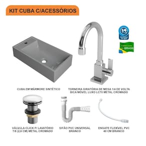 Kit Cuba RL545 C/Torneira Luxo 1195 Metal + Válvula Click 1``G + Sifão Pvc + Flexível - Cinza