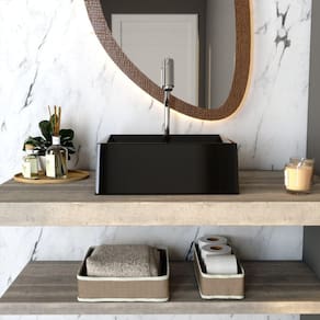 O Kit KTCART300W.PT.1062.AP02 é uma combinação perfeita da Cuba de Apoio CART300W.PT com acessórios complementares, prontos para instalação no seu lavabo ou móvel de banheiro. Ele conta com 1 Cuba de Apoio Retangular Riviera 30,8cm Preto 1 Torneira P/Lavatório Pratika 45° 1/4 Volta Bica Alta 36cm Metal Cromado 1 Válvula P/Lavatório Click Up Interno 1" (2,6cm) V02 Metal Cromado 1 Sifão Pvc Universal Branco 1 Engate Flexível Pvc Branco 40cm 0 , todos compatíveis e prontos para instalação. Acompanha Flexível: Sim Acompanha Manual de Instalação: Sim Acompanha Sifão: Sim Acompanha Torneira: Sim Altura: 11 cm Altura da Torneira: 36 cm Ambiente Principal: Banheiro Comprimento: 30,8 cm Comprimento do Flexível: 40 cm Comprimento Máximo do Sifão: 71 cm Comprimento Mínimo do Sifão: 27 cm Cor: Preto Cor do Produto: Preto Diâmetro de Entrada do Sifão: 1.1/4 Polegadas Diâmetro de Saída do Sifão: 1.1/4 Polegadas Diâmetro do Flexível: 1/2 Polegada Diâmetro do furo: 32 mm Diâmetro para válvula: 40 mm Instruções de instalação: Média: pode ser montado por mais de uma pessoa e/ou necessite de maior conhecimento para montagem. Itens Inclusos: 1 Cuba de Apoio + 1 Torneira de mesa alta + 1 Válvula de Escoamento Clik Up + 1 Sifão PVC Universal Branco + 1 Engate Flexível 40cm Largura: 27,4 cm Material da Torneira: Latão Material do Flexível: PVC Material do Sifão: PVC Material Principal: Mármore Sintético Origem do Produto: Nacional Peso: 3,8 kg Possui furação para torneira: Sim Possui ladrão: Não Pressão Indicada do Flexível: Baixa Pressão Pressão Máxima da Torneira: 40 mca Pressão Mínima da Torneira: 2 mca Recomendações de Uso, Manutenção e Limpeza: Utilize flanela seca ou pano macio, levemente umedecido com água. Evite contato com produtos químicos e abrasivos (solventes, thinner, acetona etc) e não utilize nenhum tipo de esponja de aço. Para maior brilho, recomendamos a utilização de cera automotiva n° 2. Tipo de Acionamento da Torneira: 1/4 de volta Tipo de sifão: Flexível Válvula indicada: Válvula de escoamento