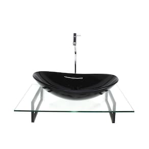 Kit cuba de vidro oval preta com tampo 60cm incolor e suporte preto Os nossos gabinetes são indicados para projetos arrojados e de muito bom gosto, além de valorizar o seu ambiente com sofisticação em uma decoração de alto padrão, ele consegue usufruir das vantagens que o vidro proporciona e gerar uma durabilidade indiscutível, sem contar que com as várias opções de cores, você sempre poderá encontrar uma cor perfeita para o seu banheiro. Os vidros são pintados com tinta de alta performance, o que lhe garante a permanência da cor . Itens inclusos: - bancada de vidro com furo para instalação da torneira 3,5cm diâmetro e para válvula click 4,5cm diâmetro - cuba de vidro oval - estrutura de polipropileno preto, ultra resistente a umidade e não enferruja - kit parafusos completo para instalação Dimensões: - bancada de vidro: 60cm x 45cm largura x profundidade - cuba de vidro oval: 47x31x13cm comprimento x profundidade x altura Espessuras: - bancada de vidro: 8mm - cuba de vidro: 10mm Montagem: montagem e instalação não inclusa na venda ou preço do produto, elas são de inteira responsabilidade do cliente. Atenção: preço referente somente ao tampo de vidro, cuba de vidro e suporte completo para instalação, este kit não inclui espelho, válvula, torneira e nem sifão. Imagens ilustrativas. Marca: Não Informado