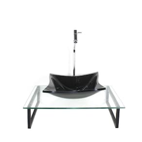 dimensões: - bancada de vidro: 50cm x 35cm largura x profundidade - cuba de vidro quadrada: 30cm x 30cm comprimento x profundidade