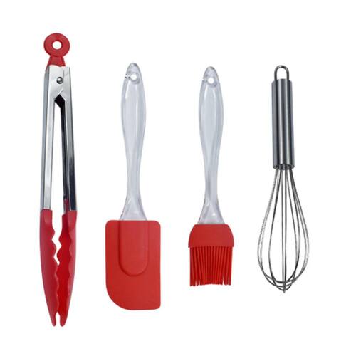 Kit Culinário 4 Peças Com Pegador, Espátula, Pincel e Batedor de Ovos