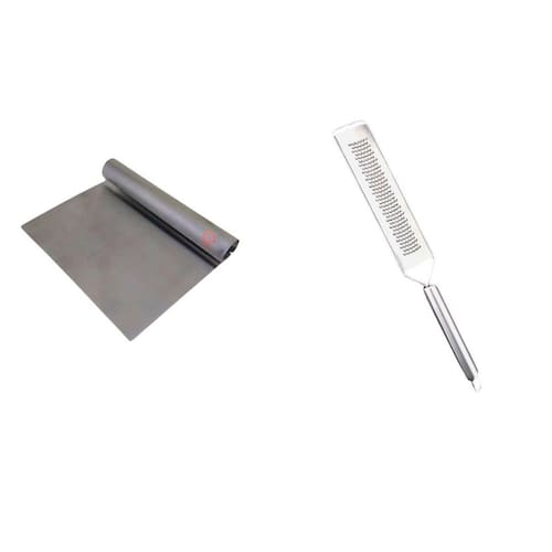 A espátula de Inox é ideal para cortar, separar, raspar, transferir e organizar durante o preparo de massas, legumes e confeitaria. -material: Aço Inox -dimensões: 11,5 cm x 15cm x 2,5 cm O ralador é ideal para ralar cascas de cítricos, como limões, laranjas, além de queijos, cenouras, cebolas e outros legumes. Com lâminas super afiadas, você fará o mínimo esforço para obter um resultado impressionante. -material: Aço inoxidável -tamanho das lâminas: afiação fina -dimensões: 33,5 cm de comprimento total e 4,5 cm de largura