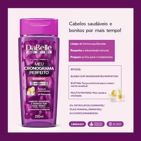 Dabelle Meu Cronograma Perfeito Shampoo + Condicionador Shampoo Limpeza leve e inteligente Respeita a oleosidade natural Retira apenas as impurezas Promove força e estimula o crescimento saudável Saúd