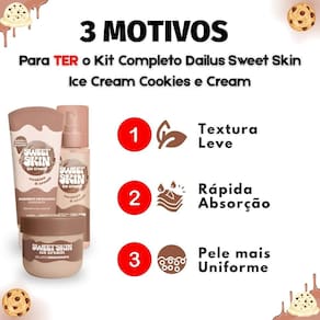 Kit Dailus Sweet Skin Ice Cream Cookies e Cream: Sabonete Esfoliante, Hidratante Corporal e Body Splash 200ml