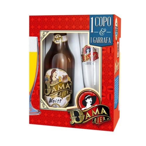 Kit Dama Bier Weiss 600Ml Com Copo Dama Bier 300Ml Contém 01 Uma Garrafa Da Cerveja Weiss 600Ml + 01 Uma Unidade Do Copo Dama Bier modelo Windsor de 300Ml. Família: Ale. Estilo: Weiss bier. IBU:12 Alc.: 5% Descrição: malte de cevada possui natural turbidez, visto que parte da levedura não é retirada no processo de preparo. Nota-se aroma complexo passando por notas condimentadas e frutadas, no paladar apresenta sensação frisante, sabores condimentados e levemente frutados, resultando em um final com suave dulçor. Harmonização: Dama Weiss vai bem com salsichas, frutos do mar, aves, saladas, queijos como Gouda e Gruyére e sobremesas, por exemplo, strudel de maçã.