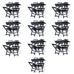 Kit De 10 Conjuntos De Mesa Dobrável 70x110 Com 4 Cadeiras Preto - Tarimatã é ideal para bares, restaurantes, estabelecimentos, áreas de lazer e tambem para sua casa. Em madeira maciça, tornando-os resistentes e duráveis. Seu design permite que esse conjunto seja encaixado em qualquer ambiente, trazendo um toque a mais para seu estabelecimento. Além de sua durabilidade, o que lhe trará conforto para servir seus clientes. Por ser dobrável torna-se mais fácil guardar, manusear e limpar o produto. Atenção: EVITE USAR PRODUTOS ABRASIVOS E QUÍMICOS PARA LIMPEZA DO PRODUTO, aconselha-se o uso de pano umedecido para melhor conservação mantenha o produto fora de chuva e sol constantes. *imagens meramente ilustrativas* Dimensões Mesa:Tampo 67,5 x 108,5 cmAltura 77cm Dimensões Cadedeira:Altura da cadeira aberta 78cmAltura da cadeira fechada 89cmAltura até o assento 46cmLargura 41,5cmLargura vão do assento 37,5cmProfundidade 40cmProfundidade do assento 32cm Marca: TARIMATA