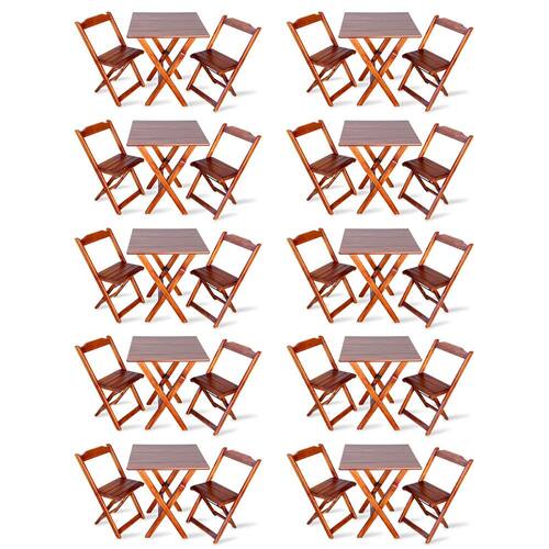 Kit De 10 Conjuntos De Mesa Dobrável 70x70 Com 2 Cadeiras Imbuia - Tarimatã