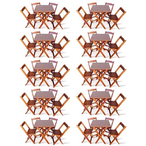 Kit De 10 Conjuntos De Mesa Dobrável 70x70 Com 4 Cadeiras Imbuia - Tarimatã é ideal para bares, restaurantes, estabelecimentos, áreas de lazer e tambem para sua casa. Em madeira maciça, tornando-os resistentes e duráveis. Seu design permite que esse conjunto seja encaixado em qualquer ambiente, trazendo um toque a mais para seu estabelecimento. Além de sua durabilidade, o que lhe trará conforto para servir seus clientes. Por ser dobrável torna-se mais fácil guardar, manusear e limpar o produto. Atenção: EVITE USAR PRODUTOS ABRASIVOS E QUÍMICOS PARA LIMPEZA DO PRODUTO, aconselha-se o uso de pano umedecido para melhor conservação mantenha o produto fora de chuva e sol constantes. *imagens meramente ilustrativas* Marca: TARIMATA