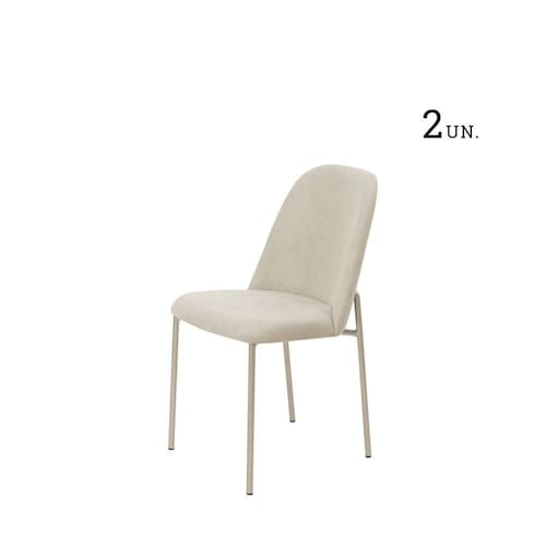 Kit de 2 Cadeiras de Aço Estofada Lucille - Champanhe c/ Soft Palha
