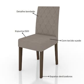 Marca: Poliman Móveis | Modelo: Cadeira Jade com Tecido Suede Bordado | Altura: 96 cm | Largura: 41 cm | Profundidade: 62 cm | Altura Embalagem: 30 | Largura Embalagem: 41 | Profundidade Embalagem: 97 | Peso: 14,8 kg | Peso Embalagem: 14,8 | Material: MDF de 25 mm, encosto MDF de 60 mm, espuma D20 revestido de suede bordado | Tonalidade: Multicolorido | Cômodo Indicado: Salas | Descrição do tamanho: 96 x 41 x 62 cm | Estado de origem: SP | Garantia em meses: 03 meses de garantia para defeitos de fabricação | Precisa de montagem?: Sim | É empilhável: Não | Profundidade do assento: 45 cm | É dobrável: Não | Condição do item: | Profundidade da cadeira: 62 cm | Fonte do produto: Loja DoceLar | Peso máximo suportado: 120 kg | Material dos pés: MDF com sapatas | Quantidade de cadeiras por conjunto: 2 | Material do assento: espuma D20 revestido de suede bordado | Incluí estofamento: Sim | Espessura do assento: D20 | Materiais da estrutura: MDP de 25 mm, MDP de 60 mm | É cadeira de balanço: Não | É cadeira para exterior: Não | Largura do assento: 41 cm | Desenho do tecido: Bordado | Material do estofamento: espuma D20 revestido com suede | Com assento almofado: Sim | Altura da cadeira: 96 cm | Enchimento do estofamento: Espuma | Desenho da cadeira: Bordado | Altura do assento a partir do solo: 51 cm | Fabricante: Poliman Móveis | Largura da cadeira: 41 cm | É kit: Não | Estilo: Moderno | Firmeza: D20 | Código de homologação ANATEL: Não se aplica | Precisa de baterias ou pilhas (areBatteriesRequired): Não | Regulamentações aplicáveis a produtos perigosos (supplierDeclaredDGHZRegulation): Não se aplica Cor: Amendoa/Capuccino
