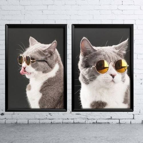 Kit De 2 Quadros Gato De Óculos A4 Kit de 2 quadrros a4 com moldura em madeira. Fita dupla face para pendurar sem sujeira. Este produto é a opção ideal para quem deseja comodidade na hora de decorar. informações do produto Moldura com 2cm de largura em madeira pinus com excelente acabamento fosco e arte impressa em vinil fosco alta durabilidade. Acompanha fita dupla face já instalada para pendurar a moldura e embalagem protetora com cantoneiras que evitam danos durante o transporte. Opções de formatos A4: gravuras no tamanho 21x30cm - medida externa: 24x33cm Prazo de produção: 03 a 05 dias úteis após aprovação do pagamento. As cores podem ter pequenas variações em relação a imagem do seu monitor. As medidas podem sofrer mínimas variações. Marca: Sdesign Ean: 7898694732986
