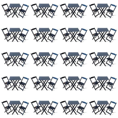 Kit De 20 Conjuntos De Mesa Dobrável 60x60 Com 2 Cadeiras Preto - Cor: Preto