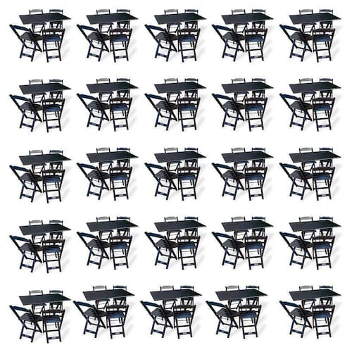 Kit De 20 Conjuntos De Mesa Dobrável 70x110 Com 4 Cadeiras Preto - Cor: Preto