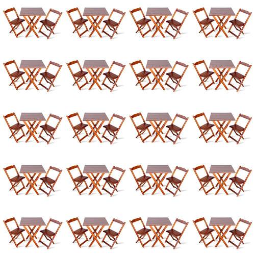 Kit De 20 Conjuntos De Mesa Dobrável 70x70 Com 2 Cadeiras Imbuia - Tarimatã é ideal para bares, restaurantes, estabelecimentos, áreas de lazer e tambem para sua casa. Em madeira maciça, tornando-os resistentes e duráveis. Seu design permite que esse conjunto seja encaixado em qualquer ambiente, trazendo um toque a mais para seu estabelecimento. Além de sua durabilidade, o que lhe trará conforto para servir seus clientes. Por ser dobrável torna-se mais fácil guardar, manusear e limpar o produto. Atenção: EVITE USAR PRODUTOS ABRASIVOS E QUÍMICOS PARA LIMPEZA DO PRODUTO, aconselha-se o uso de pano umedecido para melhor conservação mantenha o produto fora de chuva e sol constantes. *imagens meramente ilustrativas* Dimensões Mesa:Tampo 67,3 x 67,3 cmAltura 77cm Dimensões Cadedeira:Altura da cadeira aberta 78cmAltura da cadeira fechada 89cmAltura até o assento 46cmLargura 41,5cmLargura vão do assento 37,5cmProfundidade 40cmProfundidade do assento 32cm Marca: TARIMATA