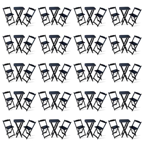Kit De 20 Conjuntos Dobrável Bistrô Preto De Mesa Com 2 Cadeiras - Tarimatã é ideal para bares, restaurantes, estabelecimentos, áreas de lazer e tambem para sua casa. Em madeira maciça, tornando-os resistentes e duráveis. Seu design permite que esse conjunto seja encaixado em qualquer ambiente, trazendo um toque a mais para seu estabelecimento. Além de sua durabilidade, o que lhe trará conforto para servir seus clientes. Por ser dobrável torna-se mais fácil guardar, manusear e limpar o produto. Atenção: EVITE USAR PRODUTOS ABRASIVOS E QUÍMICOS PARA LIMPEZA DO PRODUTO, aconselha-se o uso de pano umedecido para melhor conservação mantenha o produto fora de chuva e sol constantes. *imagens meramente ilustrativas* çMedidas Mesa Bistrô:Tampo 54cm x 45cmAltura 98cm çDimensões Cadeira Bistrô:Altura da cadeira aberta 95cmAltura da cadeira fechada 105cmAltura até o assento 61cmLargura 41,5cmLargura vão do assento 37,5cmProfundidade 43cmProfundidade do assento 32cm Marca: TARIMATA