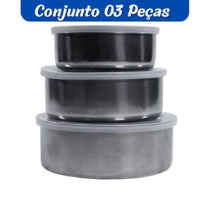 Conjunto de Potes Inox com Tampa Plástica 3 Peças