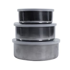 Conjunto de Potes em inox, são 3 peças em aço inox que proporcionam ao seu dia a dia mais praticidade e versatilidade em sua cozinha. Além da função de preparar e misturar os alimentos esse super conjunto traz mais beleza e requinte na hora de servir. Leve massas, saladas, guarnições e molhos à sua mesa com mais estilo e qualidade .Dê um toque todo especial na decoração de suas refeições! Pode Ser levado a máquina de lavar louça. Pode Ser levado ao microondas.