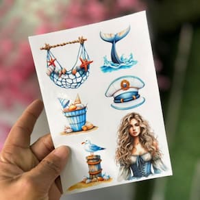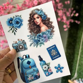 Com um design encantador que mistura elementos náuticos e florais em tons suaves de azul, este kit foi criado para deixar suas páginas de Bíblia Journal, scrapbook, planners e cadernos criativos ainda mais lindas e organizadas.