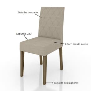 Kit de 6 Cadeiras Jade com Tecido em Suede Bordado - Marrom